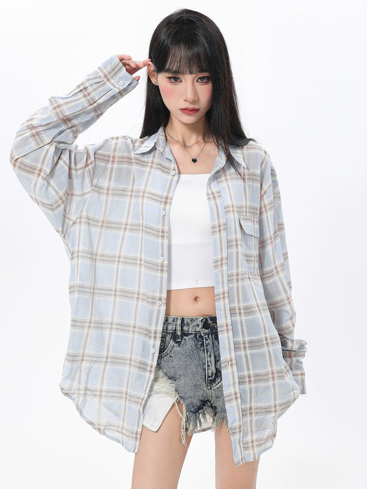 ARCG アメリカンレトロ チェック柄 日焼け防止長袖シャツ