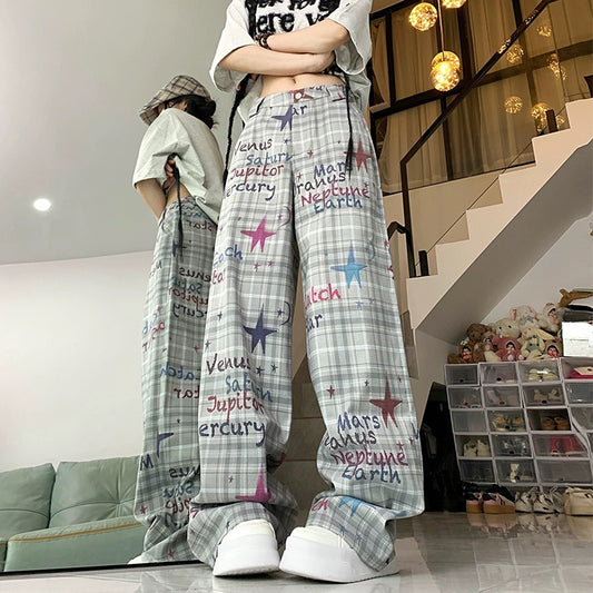 Konggeins Star Plaid Street Wide Leg Pants