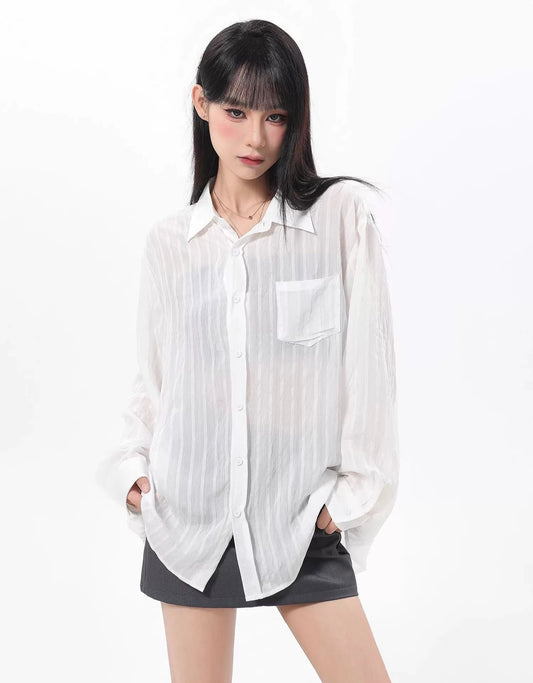 ARCG 日焼け止め ホワイト ルーズ シャツ