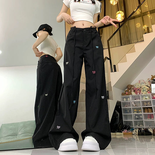 Konggeins Straight ribbon embroidery casual pants
