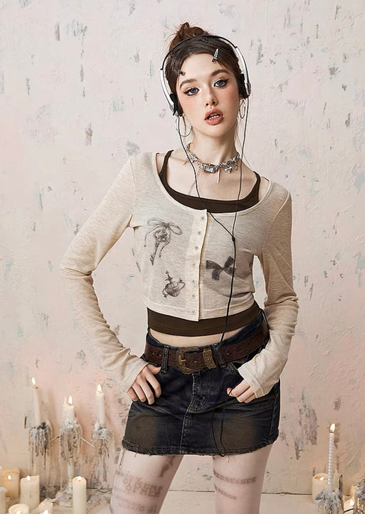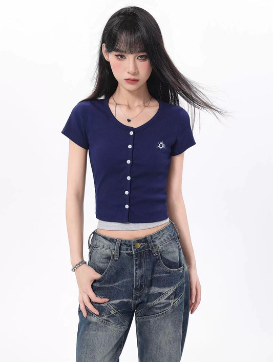 ARCG アメリカンレトロ フェイクツーピース半袖 Tシャツ