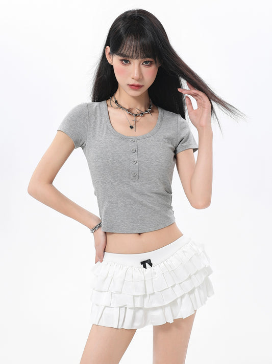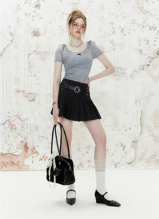 I'M ONE Retro carved decorative buckle pleated skirt
