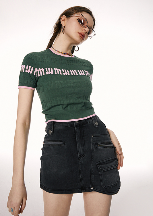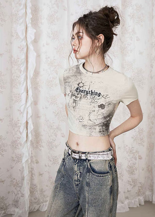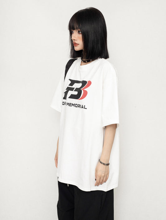 I'M ONE American retro letter print short sleeve T-shirt