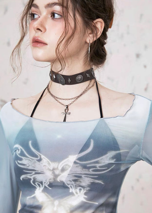 ZEROSTORE Butterfly pattern short sleeve T-shirt round neck tops