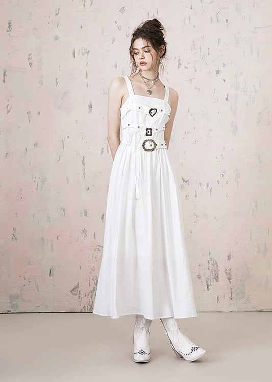 I'M ONE White Rose Lace Niche Long Skirt Retro Dress