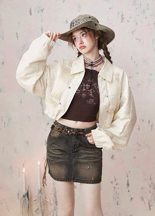 I'M ONE Retro Tucker Line Jacquard Short Coat