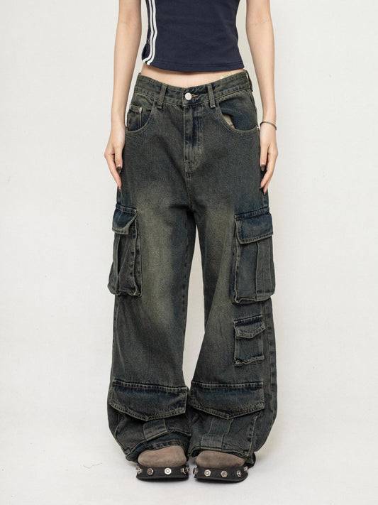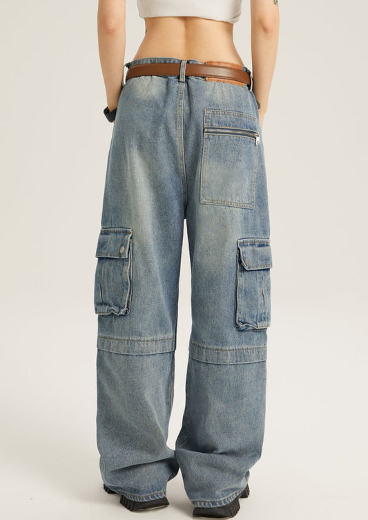 ZEROSTORE American retro jeans wide leg multi-pocket casual pants