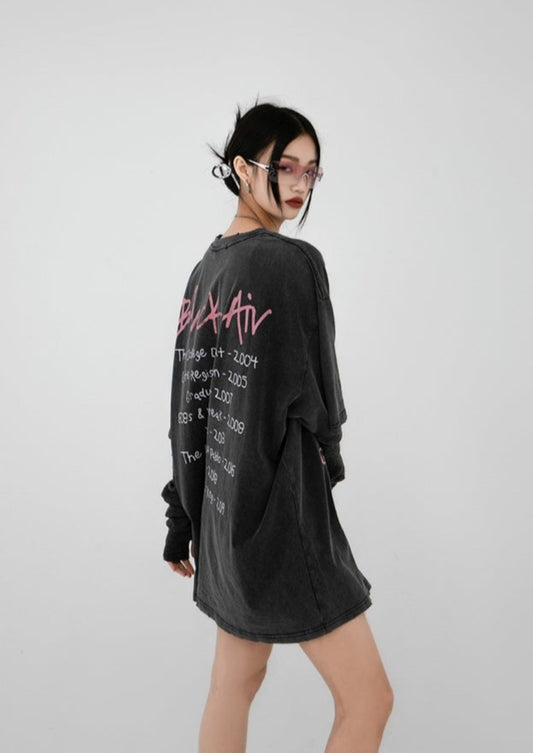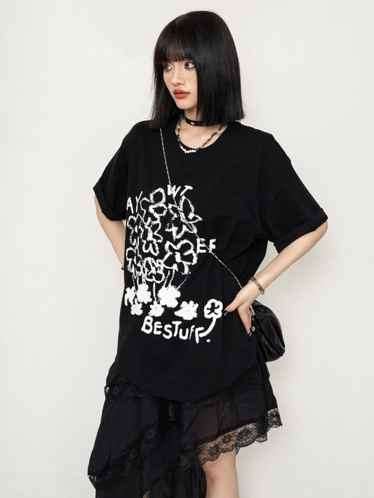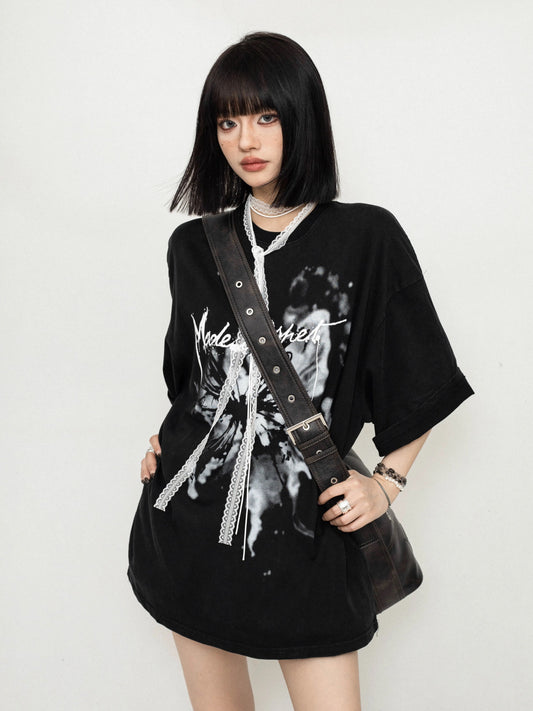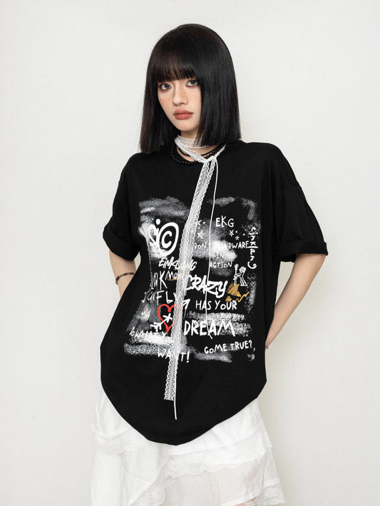 ZEROSTORE American Loose Top Graffiti Print T-Shirt