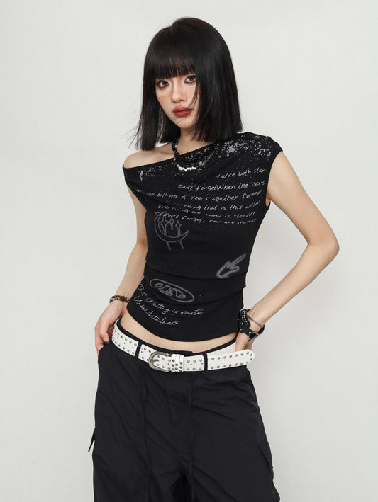 ZEROSTORE One shoulder off shoulder design tops T-shirt