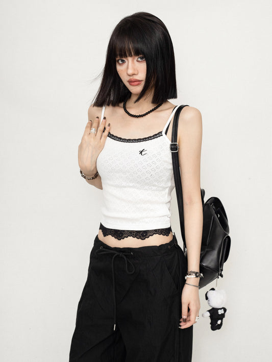 ZEROSTORE Camisole Ladies Lace Edge White Sleeveless Top