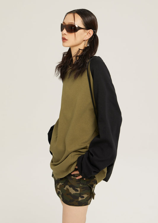 EZEK&STUDIO Over Stitch Contrast Raglan T-shirt